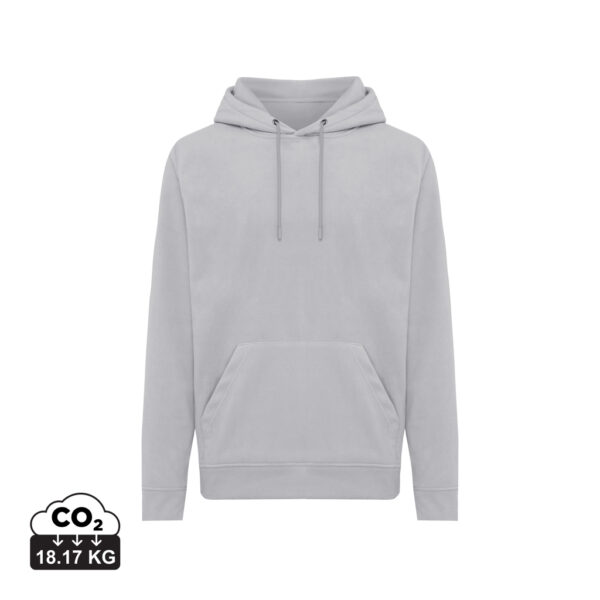 Unisex medium fit microfleece hoodie made from 100% post-consumer recycled polyester in 240 G/M². This fleece hoodie envelops you in softness and warmness. It has a convenient kangaroo pocket, double-layered hood with a tonal drawstring and metal eyelets. The Inside half-moon in woven fabric offers a perfect personalized inside neck print. Bottom hem and sleeve cuffs are made from self-fabric for extra softness. The use of genuine recycled & organic fabric materials and environmental impact claims are guaranteed, by using the AWARE™ disruptive physical tracer and blockchain technology. By scanning the QR code, you will gain access to a dedicated digital passport of the product. 2% of proceeds of each sold product will be donated to Water.org. This product is OEKO-TEX® STANDARD 100 certified.
