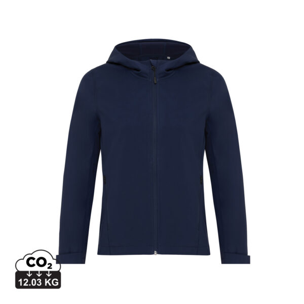 Chaqueta soft shell medium fit para mujer confeccionada en poliéster reciclado con tejido de 3 capas de 300 G/M². Utilizando membrana de TPU reciclado y suave micropolar en el interior. Cremallera invertida en la parte delantera y bolsillos laterales con cremallera. Capucha ajustable con topes interiores para una mejor protección. Puños ajustables con cierre de velcro. Tirador de cremallera adicional. Repelente al agua con BIONIC-FINISH® ECO (el tejido es con membrana de TPU reciclada hasta 5000 mm impermeable). Cortavientos y transpirable hasta 3000g/m2/24h. El uso de materiales reciclados genuinos y las declaraciones de impacto ambiental están garantizadas mediante el uso del trazador físico disruptivo AWARE™ y la tecnología blockchain. Al escanear el código QR, obtendrá acceso a un pasaporte digital exclusivo. El 2% de los ingresos de cada producto vendido se donará a Water.org. Este producto tiene la certificación OEKO-TEX® STANDARD 100. También disponible en talla masculina.
