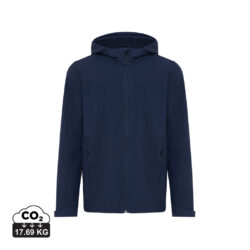 Giacca softshell da uomo medium fit in rPET con tessuto a 3 strati da 300 G/M², con membrana in TPU riciclato e morbido micropile all'interno, cerniera rovesciata sul davanti e tasche con cerniera nelle cuciture dei pannelli...