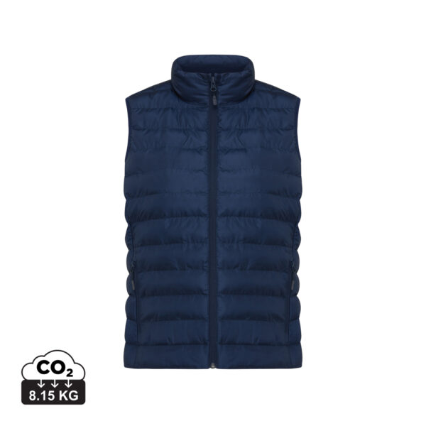 Väst i dammodell tillverkad av 100% återvunnen polyester (post-consumer). Västen är helkviltad med 100% återvunnen polyester pärlfyllning. Den har en omvänd dragkedja framtill och praktiska fickor med blixtlås på...